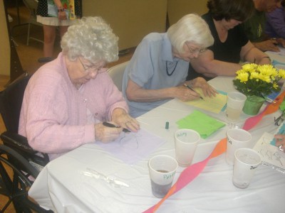 Future great-grandmothers Grandma Staley and Nana Herring both arrived early — and they each made a cute fish square for the baby’s quilt!