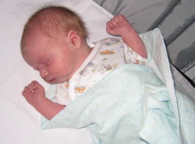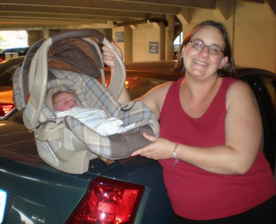 Momentous though it may seem, the five minute drive home from the hospital was the easiest part of getting discharged and settling in at home with a new baby. The first few days home were a new-baby blur, because unfortunately Lissa’s spinal headache returned on Monday with a vengeance. After a brief return visit to the hospital, by Tuesday evening we were back on track and feeling fine…or, well….just a normal amount of new parent exhaustion.