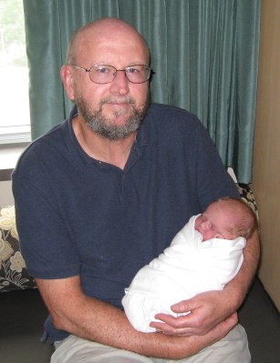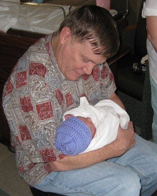 Grandpa Steve checking out his first granddaughter on Saturday afternoon.