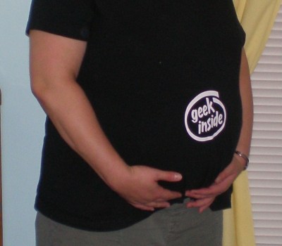Dan bought me this maternity t-shirt from thinkgeek — it was my favorite shirt throughout pregnancy, both because it was extremely comfortable and obviously awesome!!