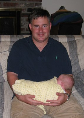 Lissa’s cousin Jon was visiting from Hawaii and happy to greet the newest Staley. Kivrin is swaddled up in a receiving blanket that Nana sewed for her.