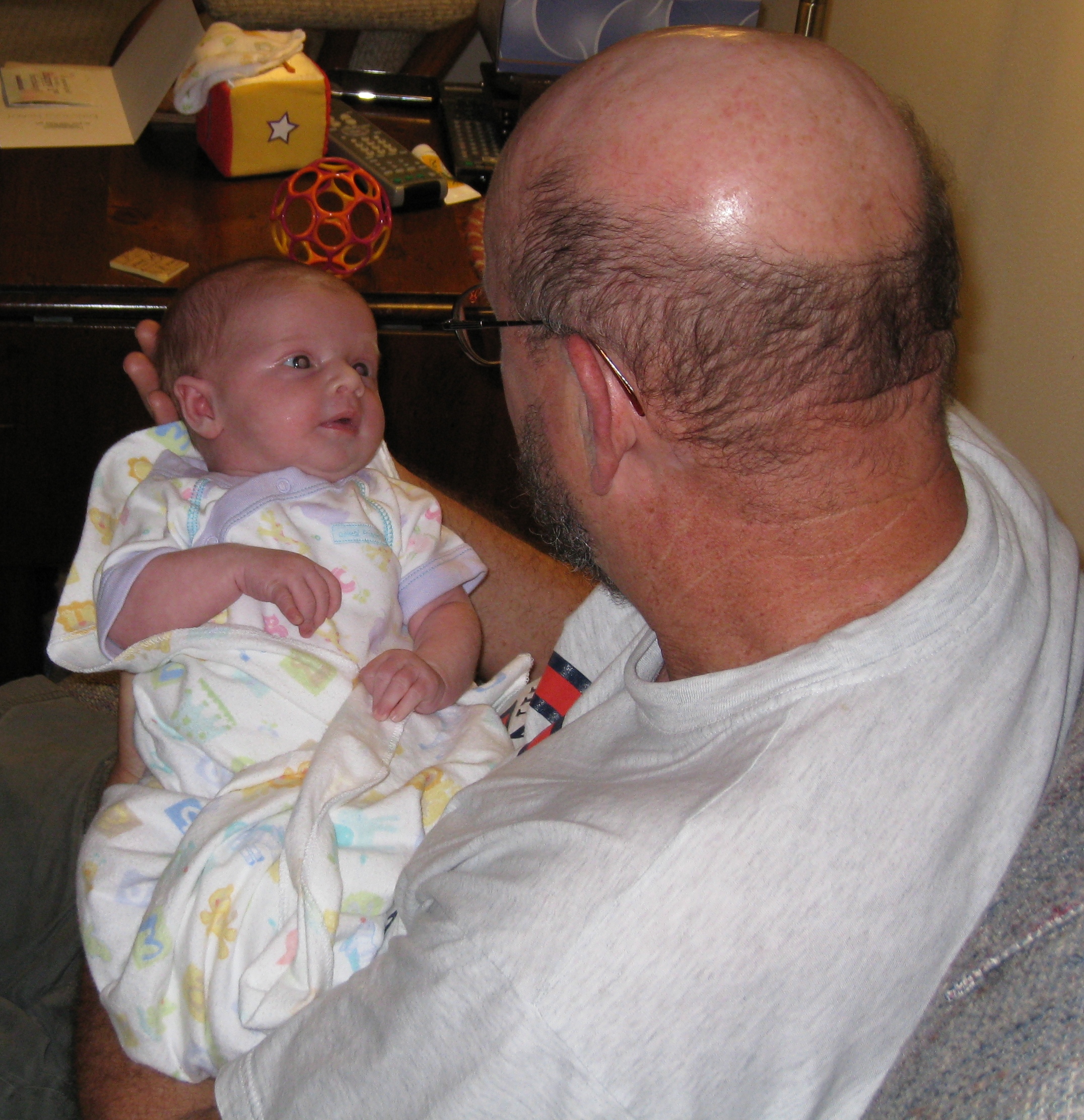 Kivrin loves to smile at her Papa Staley. He has a theory that babies like him because his beard and bald head make it look like his face is upside down, but we think Kivrin just knows a good thing when she sees it!