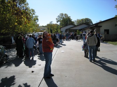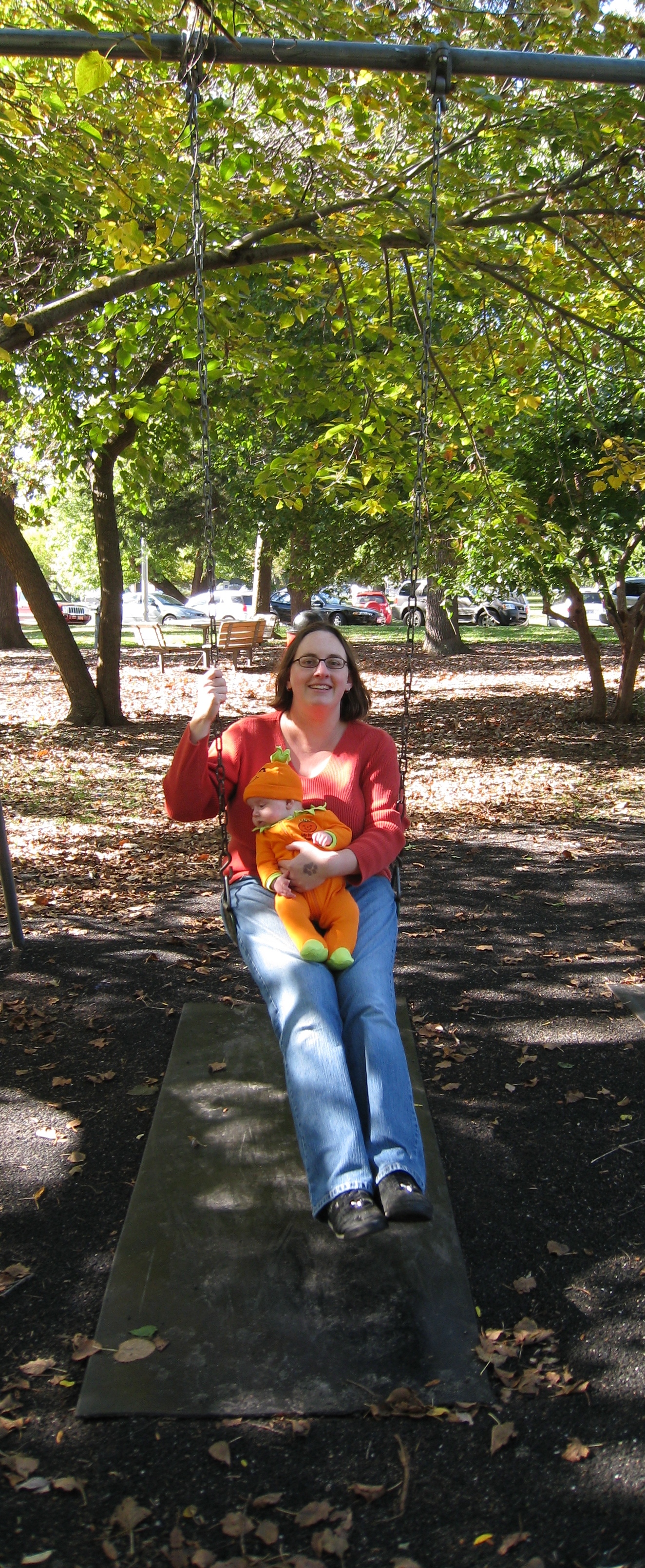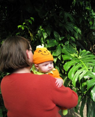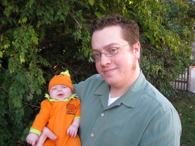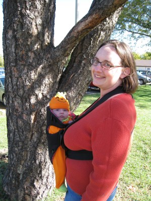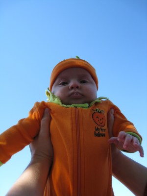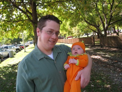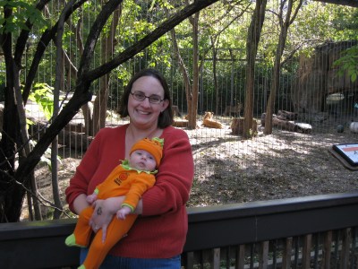 The weather was perfect, the baby was happy and awake, and Dan had an hour for his lunch break, so we headed over to “Boo at the Zoo” at Gage Park to enjoy the day. Wherever we went, we overhead people saying “Oh, look at the cute little pumpkin” (Thanks to Gramma Mary for Kivrin’s outfit!) The pictures turned out great, so I am posting way too many of them…