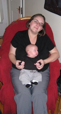The women at La Leche League are so cool and supportive — it’s great to be able to talk with other moms about these challenges. Some suggestions we are going to try include trying different brands of bottles, and trying to feed her while she is sleepy, upright, or even while walking around with her. The nurses at the Breastfeeding Clinic said that she wasn’t going to starve and she would take the bottle if she needed it – they recommended that we offer a bottle every day, although it is hard to try it that often since it is so traumatic for all of us right now. At La Leche, one person shared that her daughter refused to take a bottle at day care and would just eat all night when reunited with mommy – the fasting equivalent of sleeping through the night, but just during the day instead. Another person’s baby wouldn’t take a bottle and went straight to a sippy cup when she was 4 months old. Everyone agrees that Kivrin is getting plenty of nourishment and gaining weight steadily and that we shouldn’t worry too much about it (but it is hard not to worry, of course!!)