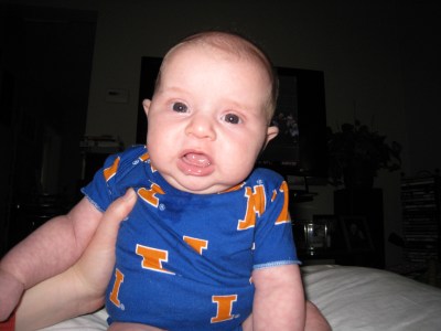 Dan says that at your four month birthday he predicts the Dow could be at 5754 and gas will be down to $1.32! Happy two-month birthday, Kivrin!