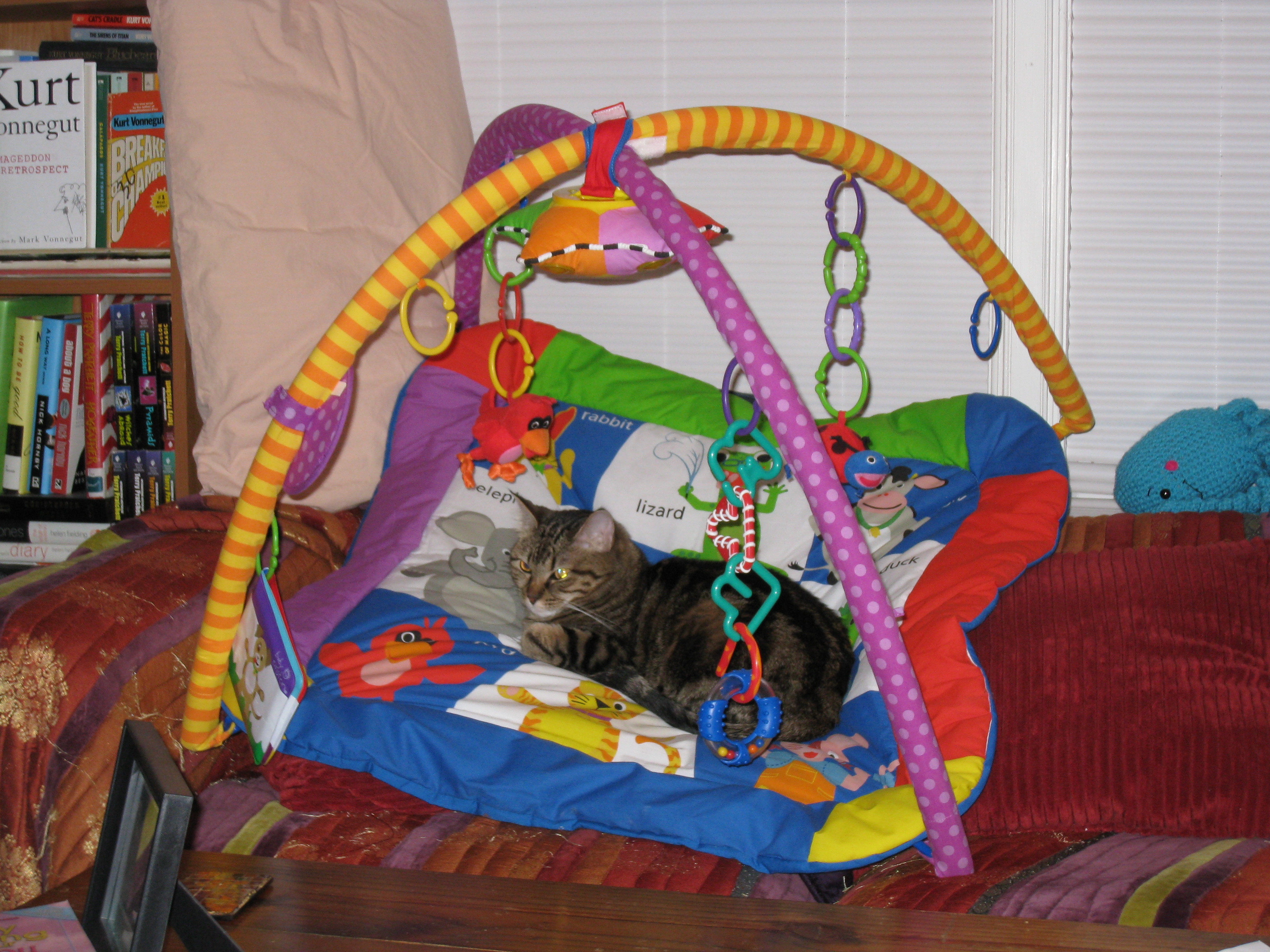 Hopefully the cats appreciate the relative peace and quiet of having an infant in the house now, because last weekend they got a preview of what it will be like to have a toddler around, and I think the big cat especially is still recovering from the ordeal!!!