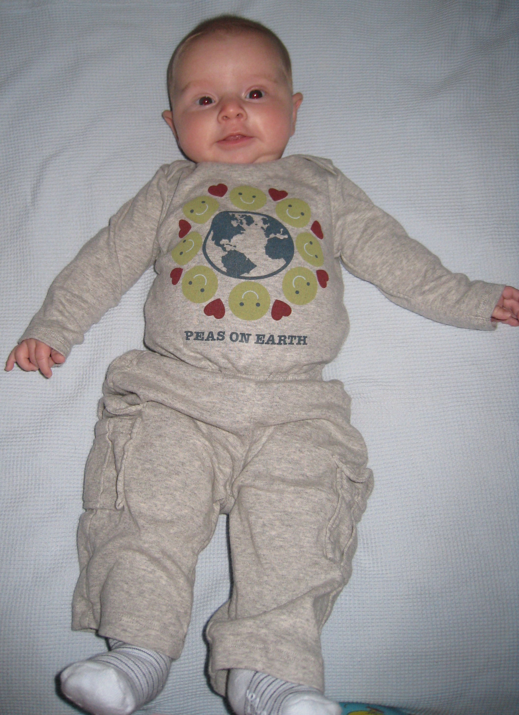 While I don’t like most of the clothes that are designed and marketed for little girls, I am a sucker for putting our daughter in cute outfits that promote things we believe in. So far, these things have been limited to concepts like “peace” and “Illinois” and “reading.” I remember a few year ago when my nephew Colin had an infant shirt that said “I already know more than the President.” I’m glad that Kivrin can opt for something more along the lines of “Change we can believe in”! (although I just checked and the Obama website isn’t even offering their “Change Can Happen” tshirts in a 9-mos size…probably because Kivrin can’t vote until the 2028 presidential elections.)