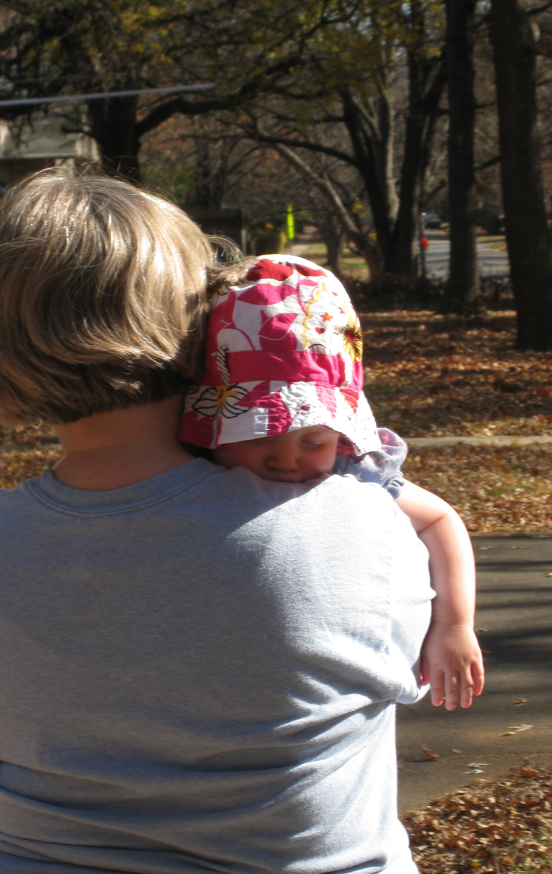 a warm fall means more park time for Kivrin » kivrin crashed out on grandmas shoulder