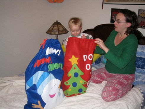 Christmas in Kansas City 2009 » looking in the bag at her santa presents